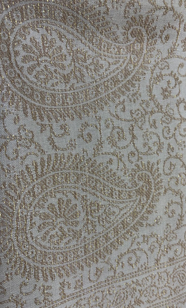 Encante-se com este tecido sofisticado, confeccionado com fibras de alta qualidade e detalhes em fios dourados que proporcionam um brilho elegante e discreto a sua textura suave e acabamento refinado tornam essa peça ideal para looks festivos, trajes sociais, artesanato de luxo ou decoração diferenciada.